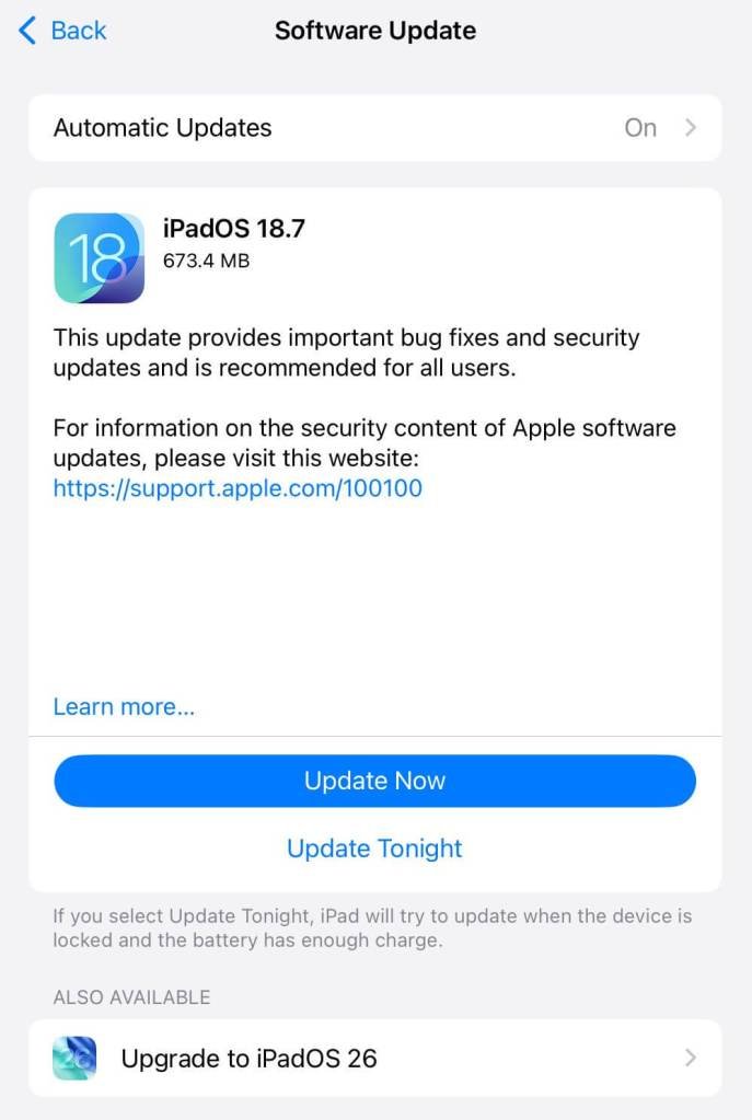 Apple has today released version 26 for all its software platforms. This new version brings in a new “Liquid Glass” design, expanded Apple Intelligence, and new features. You can choose to update to that version, or just update to fix the vulnerabilities:
